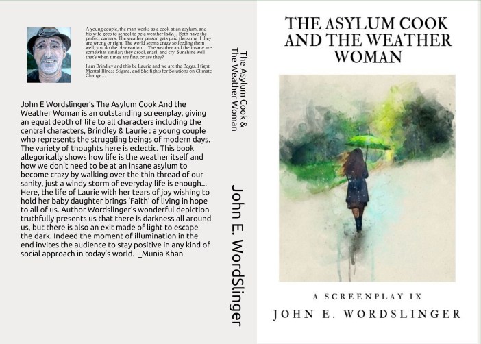 John E Wordslingers’ The Asylum Cook And the Weather Woman is an outstanding screenplay #IX, giving an equal depth of life to all characters including the central characters, Brindley & Laurie : a young couple who represents the struggling beings of modern days. The variety of thoughts here is eclectic. This book allegorically shows how life is the weather itself and how we don’t need to be at an insane asylum to become crazy by walking over the thin thread of our sanity, just a windy storm of everyday life is enough… Here, the life of Laurie with her tears of joy wishing to hold her baby daughter brings ‘Faith’ of living in hope to all of us. Author Wordslinger’s wonderful depiction truthfully presents us that there is darkness all around us, but there is also an exit made of light to escape the dark. Indeed the moment of illumination in the end invites the audience to stay positive in any kind of social approach in today’s world. _ Munia Khan…